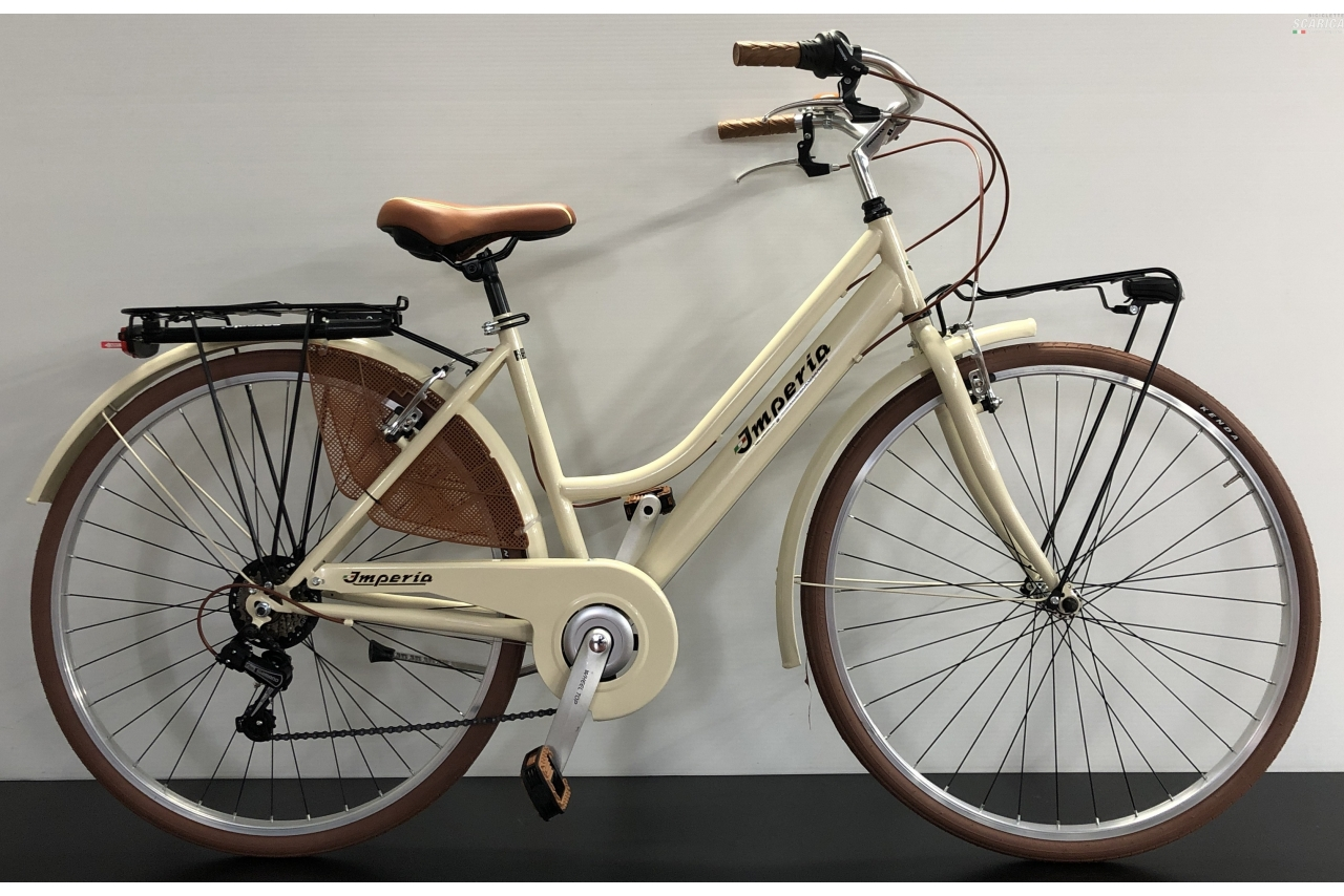 | Accessori | Carter metallo, parafanghi metallo, cavalletto, portacesto, portapacco, paraveste, campanello, impianto luci a batterie (incluse) |